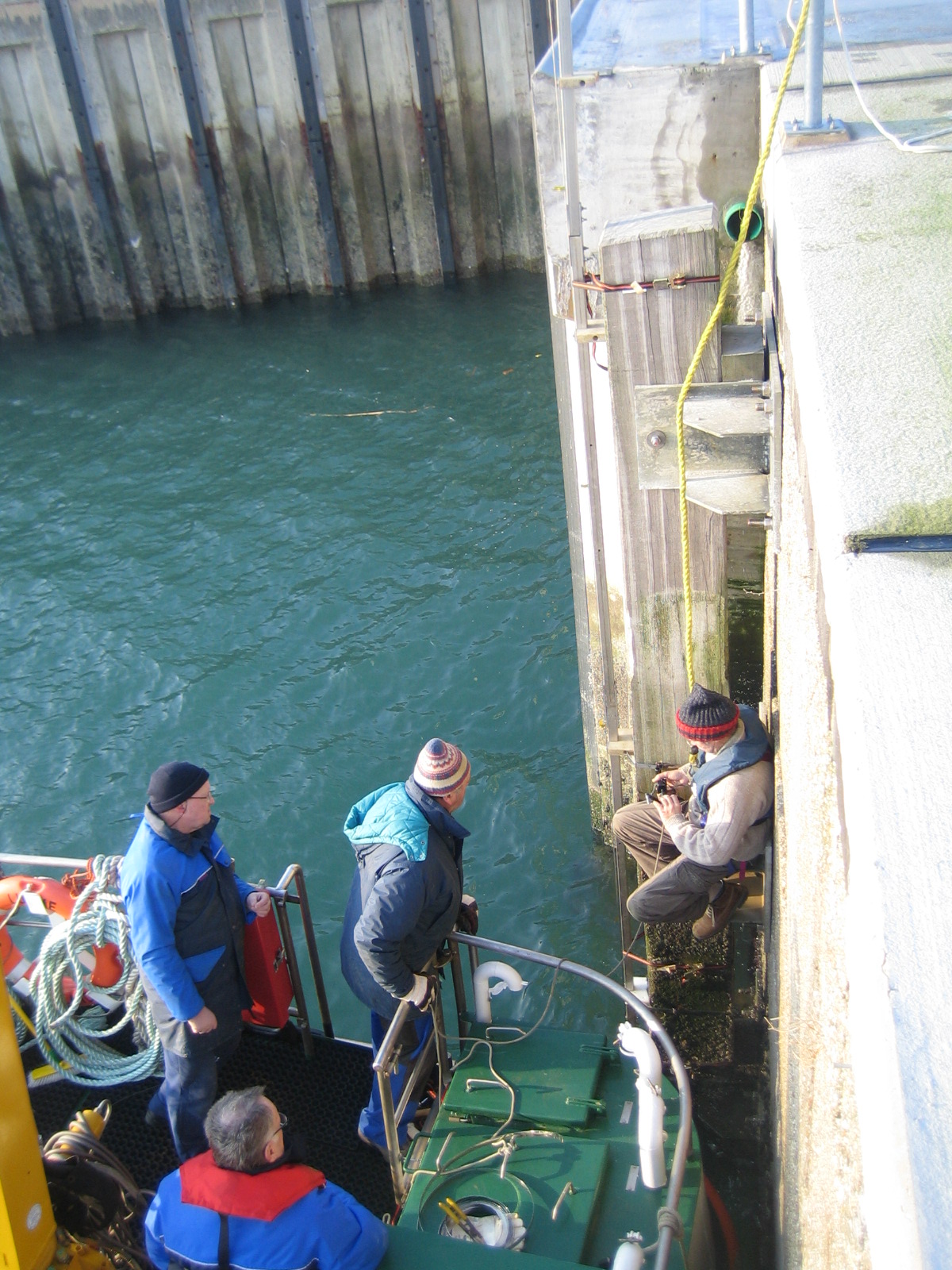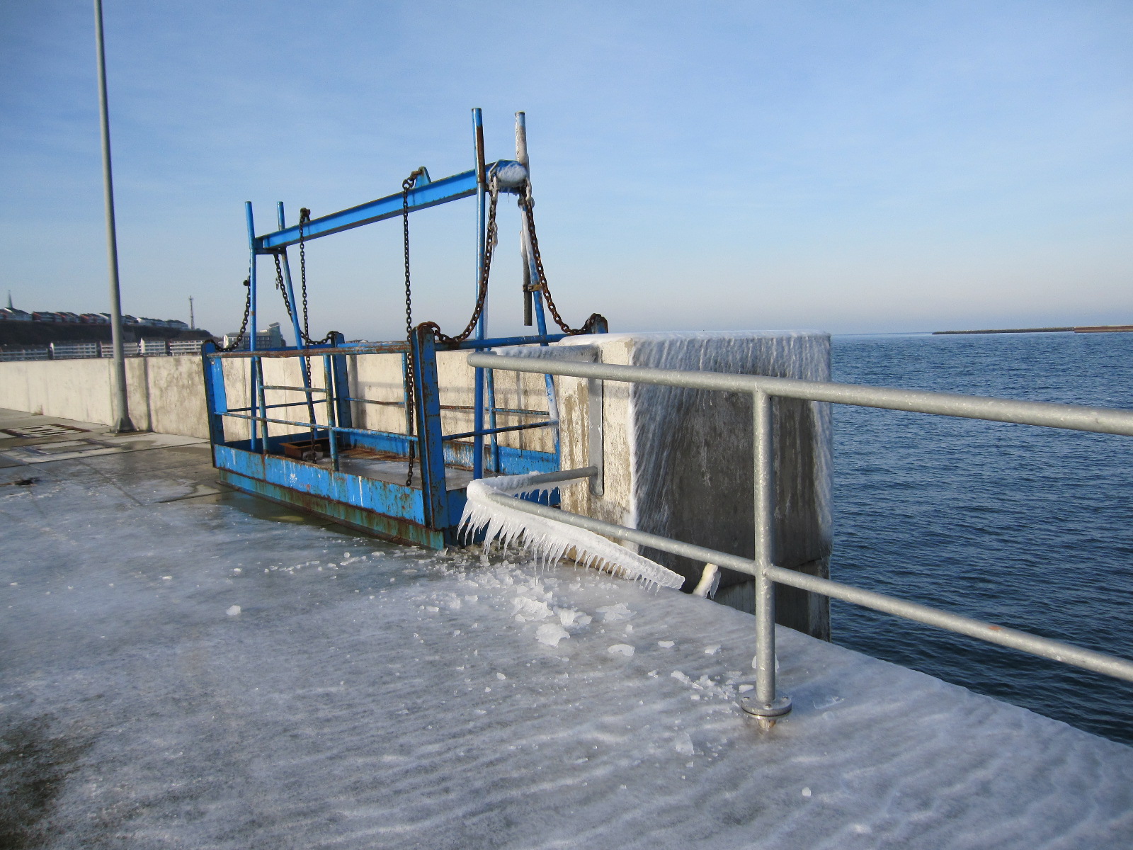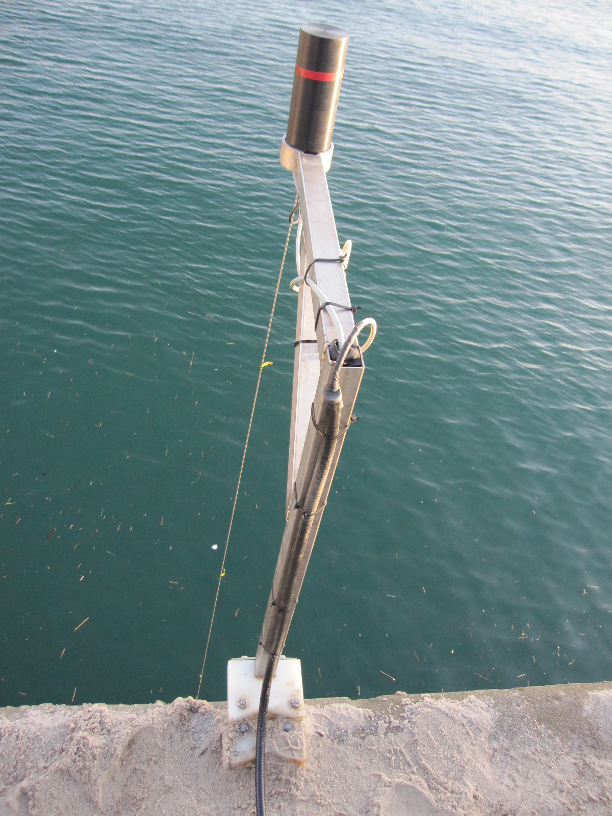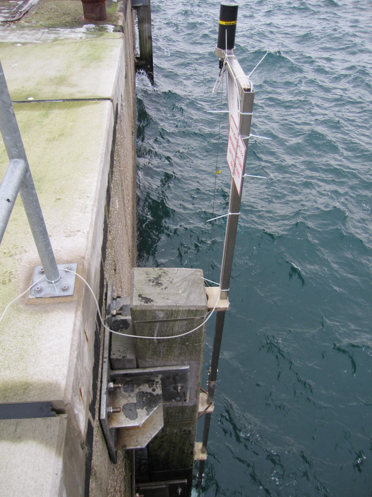 For further planning the wave impact in the southern harbour of Helgoland has to be measured. There two wave gauges have been installed.